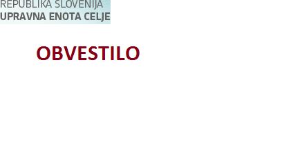 Upravna enota Celje obvešča lastnike stanovanjskih stavb, da na podlagi 82. člena Uredbe o upravnem poslovanju (Uradni list RS, št. 9/18, 14/20 in 167/20) in enotnega klasifikacijskega načrta z roki hrambe odbira in izloča gradbene projekte individualnih gradenj, ki jim je potekel rok hrambe. Gre za projekte, ki so bili prejeti leta 2009 in leta 2010.