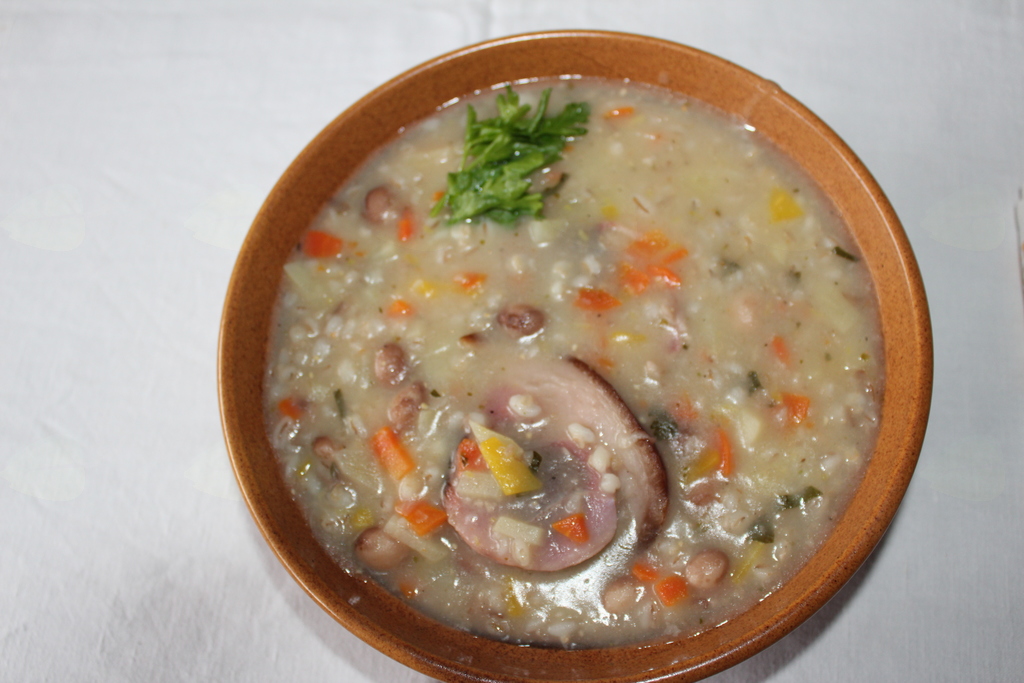 Ričet je preprosta kmečka enolončnica, ki jo pripravljamo kot samostojno jed, največkrat v hladnejših mesecih. Ričet v različnih krajih Slovenije pripravljajo različno. Vsaka gospodinja ima svoj najljubši recept, tudi Mira. Pri kuhi lahko sprostimo svojo domišljijo in naredimo jed z mesom ali brez njega. Verjetno tudi vi spadate med tiste, ki vas ričet pika. Pa ima ta jed po krivici takšno označbo. Jed je zdrava, primerna našemu podnebju, potrebam po kalorijah, pripravimo jo lahko za večkrat (shranimo v zamrzovalniku) in vsebuje poleg ješprenja še veliko zelenjave z domačega vrta. Ječmenova kaša vsebuje večje količine kalija, fosforja in magnezija ter različne vitamine. Bogata je s prehranskimi vlakninami, antioksidanti v njej pa pomagajo pri zaščiti pred boleznimi srca in ožilja. Odlična je za pripravo glavnih jedi, prilog in solat. Ječmen je zelo staro, že nekoliko pozabljeno žito, vendar se mu pišejo boljši časi. Raziskave so pokazale, da je ječmen edina rastlina, ki v velikih količinah vsebuje vse vodotopne vitamine, aminokisline in večino za življenje potrebnih elementov in snovi.