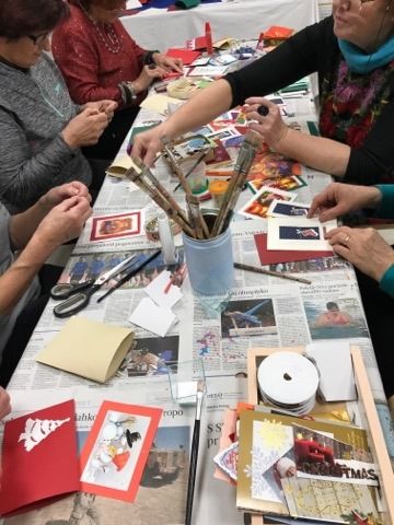 Kar nekaj udeležencev ustvarjalne delavnice za odrasle je v Knjižnici Vojnik v ponedeljek, 16. 12. 2019, preizkusilo svoje ročne spretnosti. Ob navodilih Silve Zimšek so izdelovali voščilnice in kar je vredno poudarka, uporabljali so različne materiale, ki bi drugače končali na smetišču.