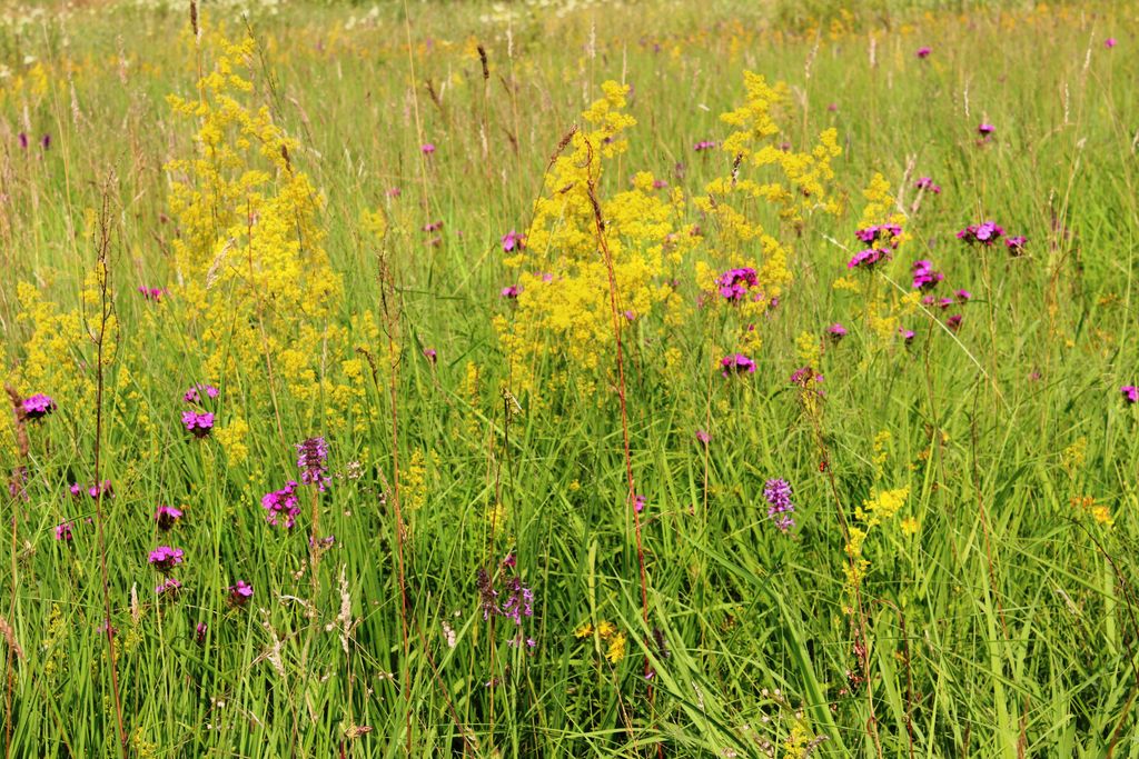 Travnik je bil v juniju v polnem razcvetu, barve so bile živahne, rastline so privabljale čebele, med podrastjo je bilo ogromno živali. Takšen travnik se je ohranil zato, ker lastnik vsako leto počaka s košnjo, da rastline odcvetijo in ne gnoji z umetnimi gnojili. Med travami uspeva močvirski oslad, vijavčnica, krvenka, čistec, močvirska kukavica, divji nagelj, navadna lakota, prava lakota in še kaj. Rastline in živali, ki vsako leto obiskujejo cvetove, ustvarjajo podobo miru, lepote in harmonije. Ob ogledu fotografij si lahko predstavljate »glasbo« čebel, čmrljev, čričkov … Pa ne gre samo za lepoto, med rastlinami so nekatere zaščitene, nekatere zdravilne in vse predstavljajo pašo za oči in dušo.