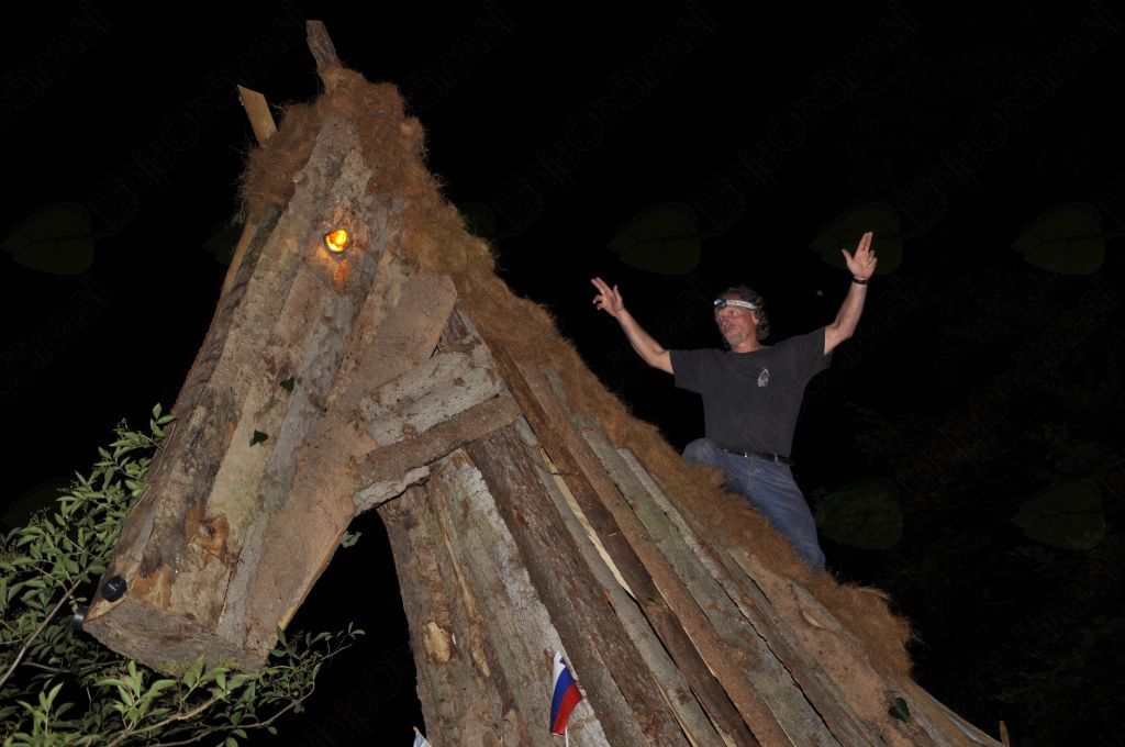 Tomo Videnšek je takole opisal dogodek: »30. junija popoldan je zastal promet na relaciji Vojnik–Globoče, saj se je po magistralki pomikal nenavaden počasen sprevod. Vesela druščina (več kot 30 ljudi) je po magistralki prevažala pravega trojanskega konja, visokega skoraj 6 metrov. Sprevod je bil prava paša za oči. Ljudje so se ustavljali, slikali, snemali ... Na srečo sta ob poti tudi dve lokalni 'furmanski' gostilni, kjer so popotniki konja tudi pošteno 'napojili'. Konj je bil namenjen v Globoče (tisti dan Troja), kjer je Tomo Videnšek praznoval abrahama. Nič hudega sluteč je na dvorišču zagledal ogromnega konja. Še preden bi mu bilo karkoli jasno, pa je doživel napad vriskajočih prijateljev, ki so nanj planili iz trojanskega konja. Skratka šlo je za pravi trojanski napad sredi občine Vojnik. Da je Troja odkrita, smo ugotavljali do jutra ob kozarčku rujnega Maledolčana in lepi slovenski pesmi. Hvala prijatelji, ideja je bila izvirna.«