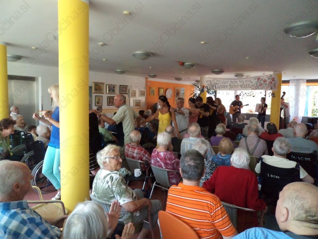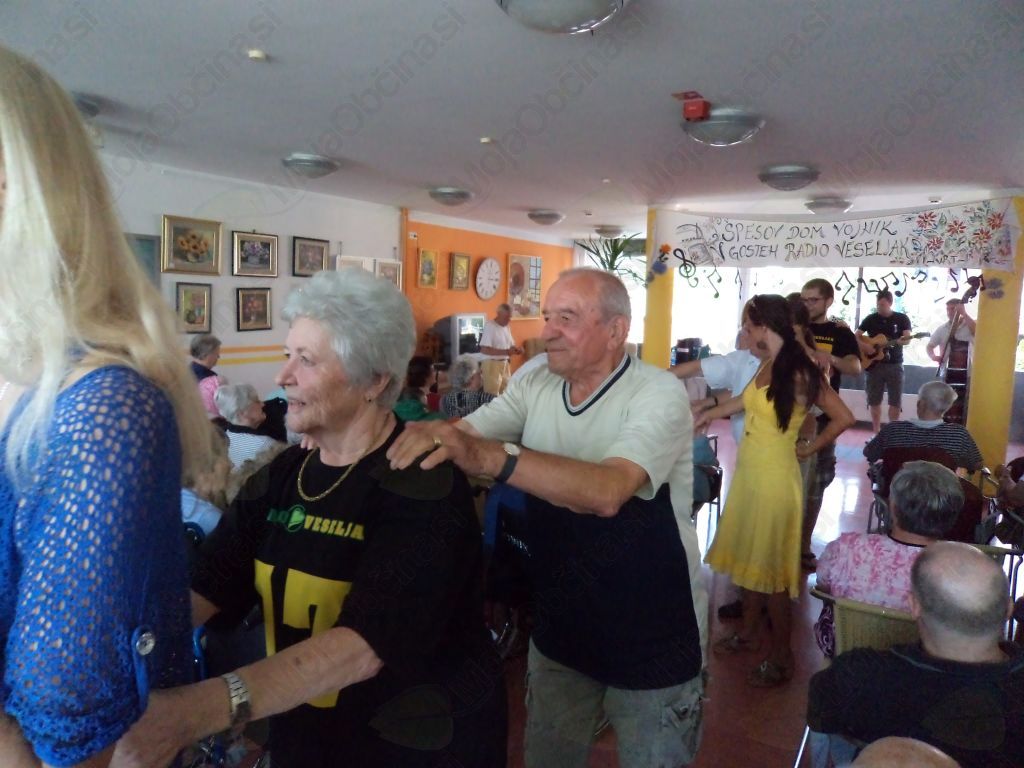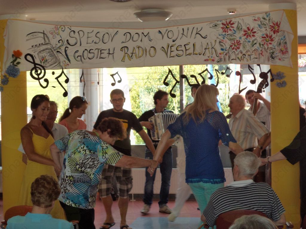 Toda letos kljub visokim temperaturam nismo mirovali.19. julija je naš dom obiskala skoraj cela ekipa Radia Veseljak, skupaj z ansamblom Vrt, ki je še bolj razgrela že tako ogreto ozračje. Se boste vprašali, kako so zašli v Vojnik? Naša stanovalka Marija Gričar, Ljubljančanka, ki živi pri nas, se z „Veseljaki“ druži že lep čas - beseda je dala besedo in rade volje so se odzvali, da jo obiščejo. Z nami so preživeli prijetno urico, skupaj smo zapeli, zaplesali, se pogovarjali in veliko smejali. Nikomur ni bilo vroče zaradi vročine, ki je pritiskala od zunaj, ampak nam je bilo prijetno toplo pri srcu in v duši – in spoznanje, da le prijazen nasmeh, lepa beseda in dobra volja nekaj štejejo.