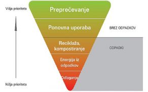 Direktiva o odpadkih določa 5-stopenjsko hierarhijo ravnanja z odpadki, ki se upošteva kot prednostni vrstni red pri načrtovanju politike in pripravi zakonodaje na področju odpadkov.