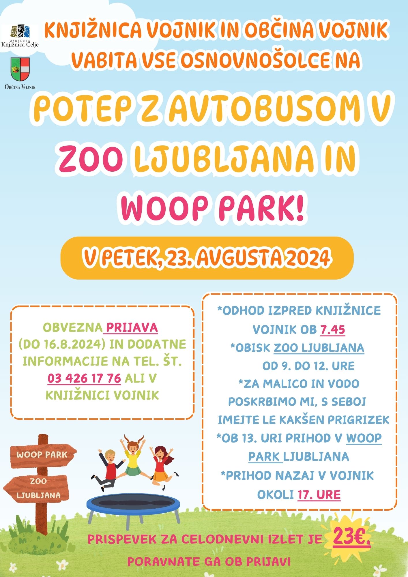 Obvezna predhodna prijava (do 16.8.2024) na tel. št. 03 426 17 76