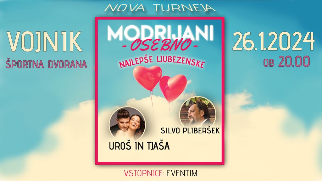 Modrijani so pripravili povsem novo turnejo Modrijani osebno z naslovom Najlepše ljubezenske. Tokrat vas bodo razvajali z izbranimi ljubezenskimi pesmimi in s posebnimi gosti. Modrijanom se bodo na turneji pridružili Uroš in Tjaša ter Silvo Pliberšek. Osebne in zabavne zgodbe, najlepše ljubezenske pesmi ter posebne izvedbe pesmi znova vabijo vse ljubitelje domače glasbe in večglasnega petja.