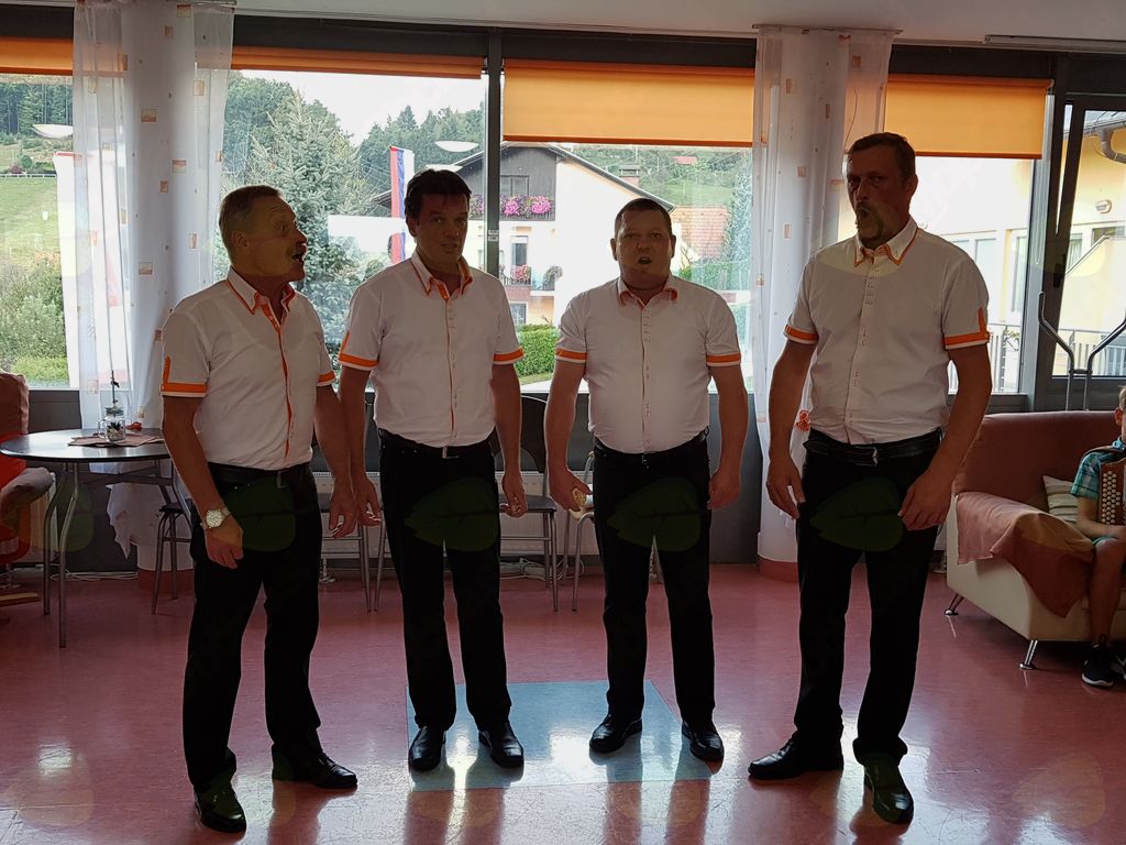 Veselo je v teh jesenskih dneh tudi v našem domu, saj se ob večerih že vrstijo prireditve – nastopili so člani kvarteta Frankolovo, Ljudski pevci in godci KUD Socka, do solza pa nas je nasmejal in nas s svojo harmoniko razgrel pohorski klatež Gojko Jevšenak.