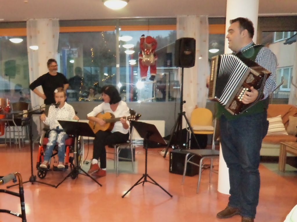 Seveda nas je kot vsako leto prvi pod pokroviteljstvom občinske Karitas obiskal Miklavž in nas lepo obdaril. Spomnil nas je na otroške dni, ko smo ga vsako leto na ta večer nestrpno pričakovali in v strahu zrli proti oknu, kjer so rožljali parkeljni. Še isti popoldan nas je obiskala mlada pevka Ajda Brilej s spremljevalnim ansamblom ter svojo mentorico iz Glasbene šole Krško. Na nastop pa je prišel tudi njen oče, znani harmonikar Jernej Brilej, in skupaj so nas popeljali skozi različne zvrsti glasbe. Na omenim, da Ajdo, kljub temu da je gibalno ovirana, to ne omejuje pri prepevanju oziroma izražanju z glasbo. Čudovit večer, ki si ga velja zapomniti!