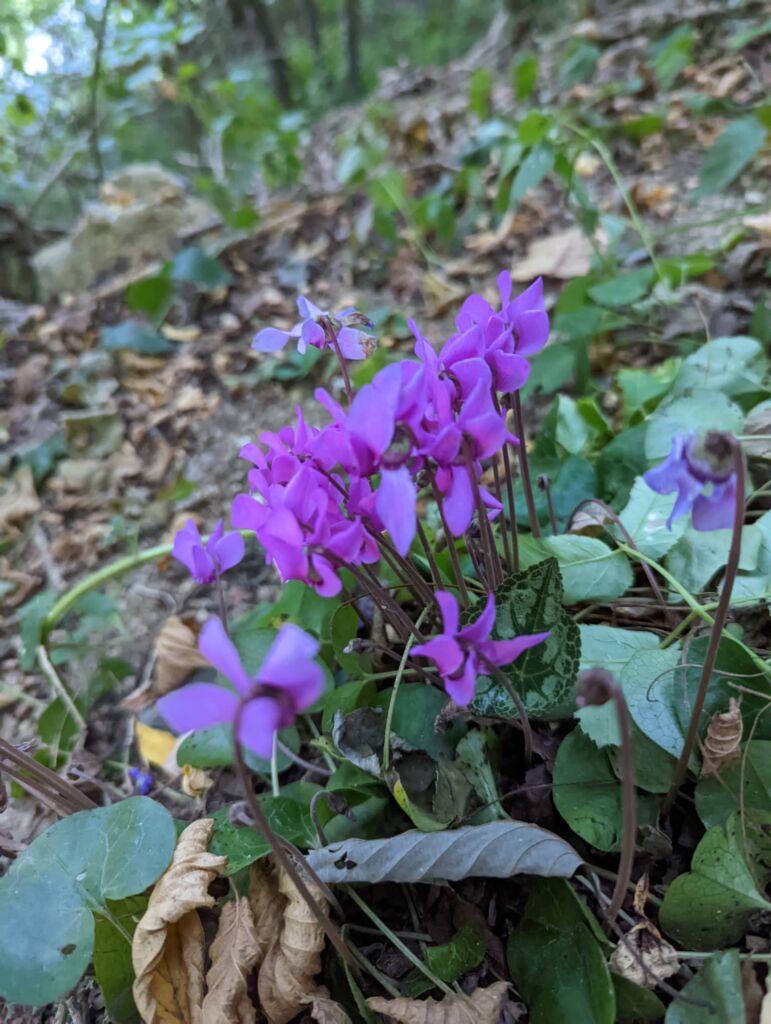 Cveti pozno poleti in v jesenskih mesecih. Gre za zimzeleno rastlino, ki je velika do 20 cm, uspeva pa v listnatih in mešanih gozdovih. Srčasti listi ciklame so na spodnji strani vijolične barve, na zgornji pa imajo lepe zelene vzorce. (povzeto po Notranji-park.si)