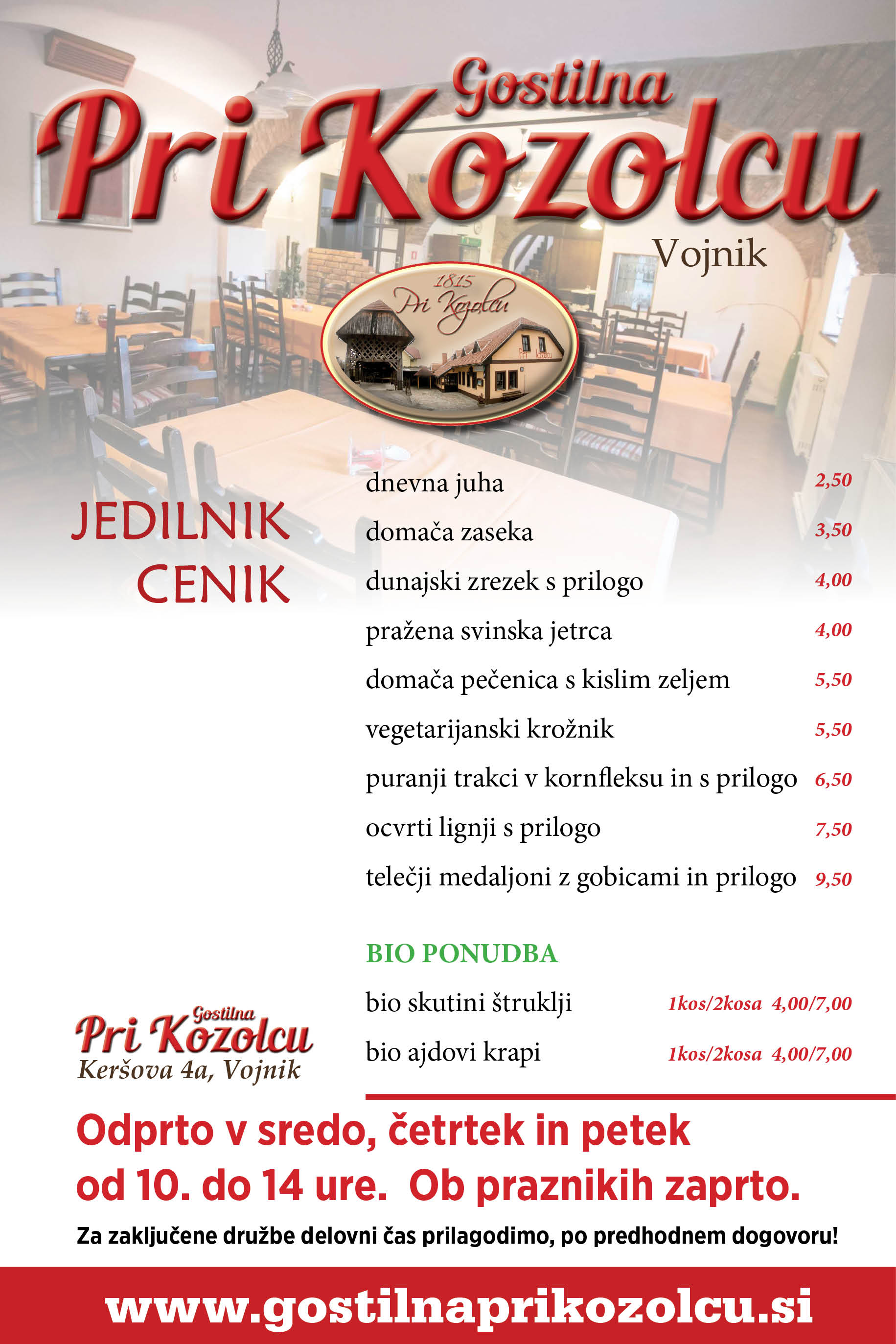 Kontakt: tel. št. 031362749, spletna stran: www.gostilnaprikozolcu.si
