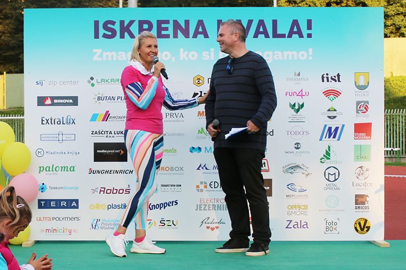 Obiskovalce je skozi nepozaben in nasmehov poln dan popeljal priljubljeni radijski voditelj ter velik dobrotnik Miha Deželak, za zvrhano mero motivacije pa je vseskozi skrbela tudi pobudnica in gostiteljica dogodka Tanja Skaza. Slednja je v tandemu z Vlasto Nussdorfer, svetovalko predsednika republike na področju človekovih pravic, odprla uradni del dogodka, nato pa je sledilo ogrevanje z rokometaši kluba Gorenje Velenje, Piko Nogavičko in plesno skupino M-Dance. Udeležence so z glasbenimi točkami bodrili bobnarji Laške pihalne godbe ter raper Trkaj in pevka Anabel, vsakega tekača pa sta ob prihodu na cilj z medaljo za srčnost nagradila Bepopovka Tinkara Fortuna in deskar na snegu Tim Mastnak.