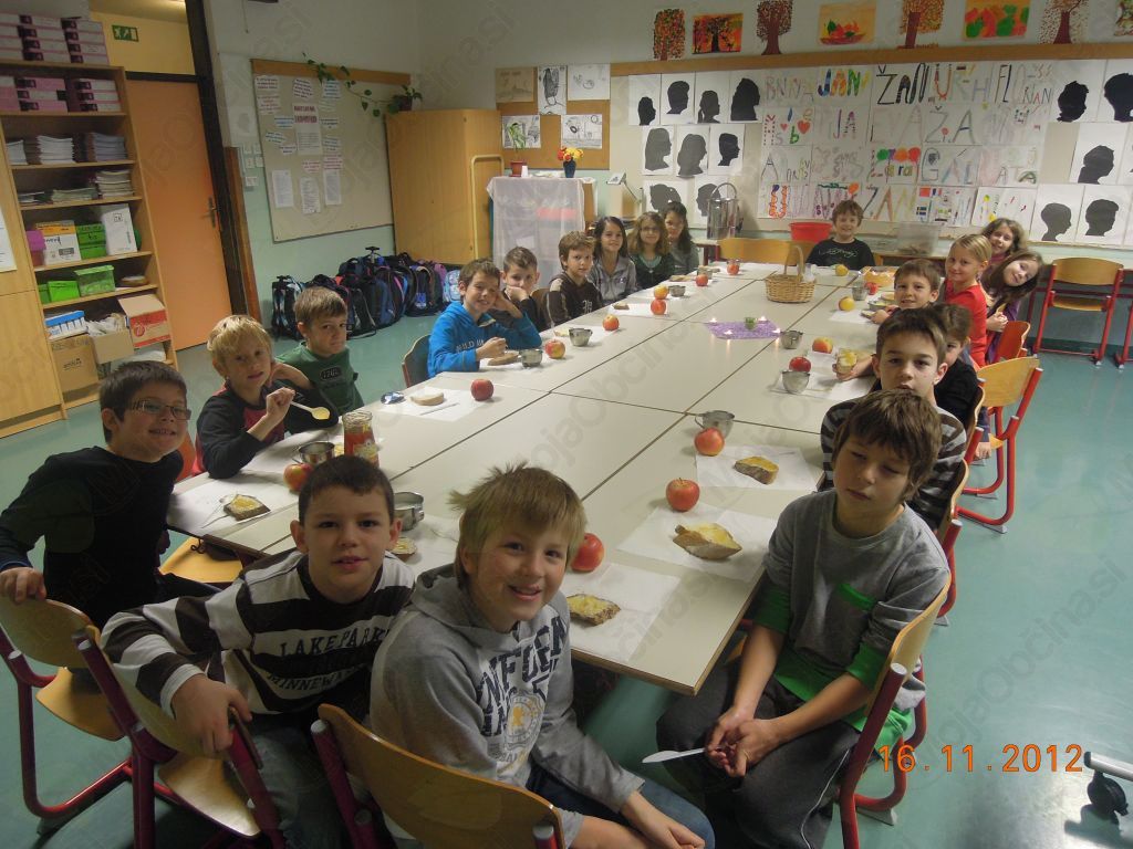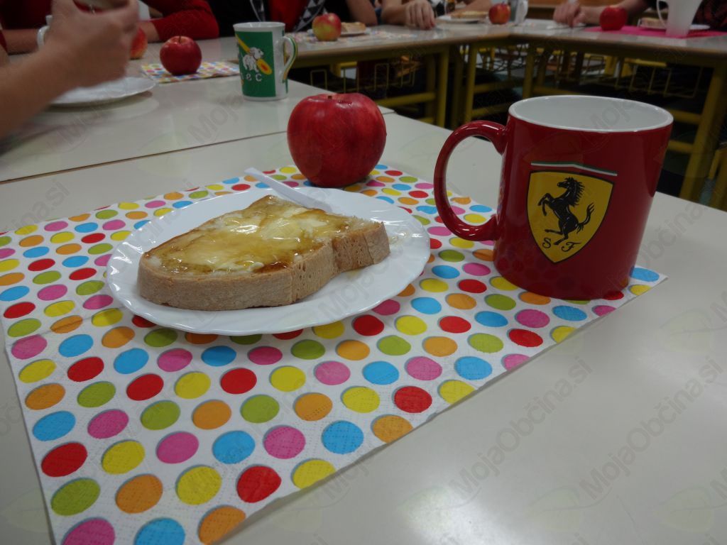 S tradicionalnim slovenskmi zajtrkom s toplim mlekom, dišečim domačim kruhom, maslom, medom in sočnim jabolkom so otroci naših vrtcev in šol začeli šolski dan v četrtek, 16. 11. 2012.
