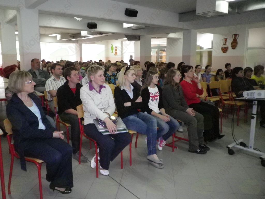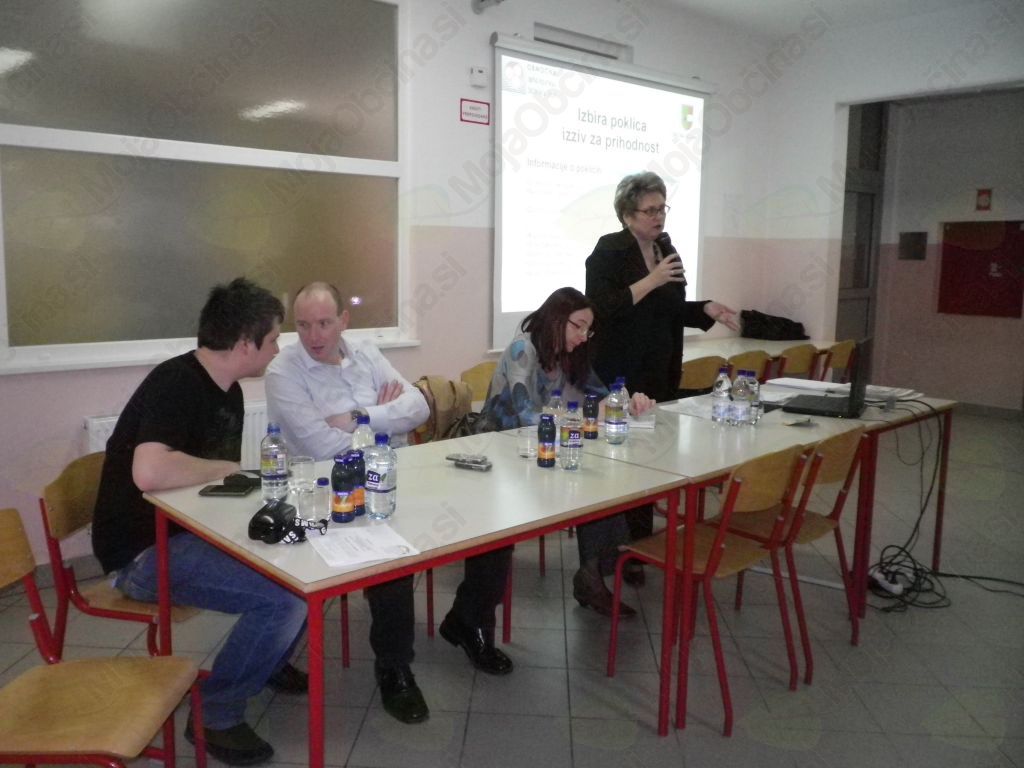 Udeležence okrogle mize, ki jih je bilo, kljub prelepemu, skoraj poletno toplemu in sončnemu popoldnevu, polna jedilnica, smo seznanili tudi s pristojnostmi ljudi današnjega časa in jih opozorili na prednosti pa tudi pasti uporabe interneta. Spodbudili smo jih k razmišljanju, ne samo o tem na katero šolo se bodo v naslednjem letu vpisali, ampak tudi k temu, kaj bi v življenju delali: iskali zaposlitev ali pa imeli možnost odločitve tudi za samostojno podjetniško pot.
