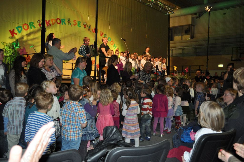 S tem namenom smo na prireditvi Kdor poje, kdor pleše, se igra, je v vrtcu Mavrica doma vključili vse otroke, od najmlajših do tistih, ki gredo jeseni v šolske klopi. Starejši so se priključili mlajšim, saj so njihov vzor in spodbuda tudi v vsakodnevnih situacijah. Na prireditvi je sodelovalo vseh 21 skupin, tako iz centralne enote Vojnik kot tudi iz vseh podružničnih enot vrtca Mavrica Vojnik. Nit prireditve je bilo ljudsko izročilo, ki nas povezuje že vrsto let in nam daje možnosti samooblikovanja. V starih časih so bile pesmi ob večerih na peči ljudski običaj, ki je družino povezoval in v hišo prinašal veselje. Zakaj ne bi tega na malo drugačen način pričarali tudi naši otroci. Ljudska pesem je nikoli dokončan proces, ki mu še posebej otrok s svojo ustvarjalnostjo prinese nov veter, ki nas ponese v svet domišljije. Ker pa se zavedamo pomena sodelovanja z družino, smo pozorni tudi na različne oblike druženja s starši in jim ob tem ponujamo možnosti, s pomočjo katerih lahko vidijo svojega otroka v različnih izzivih.