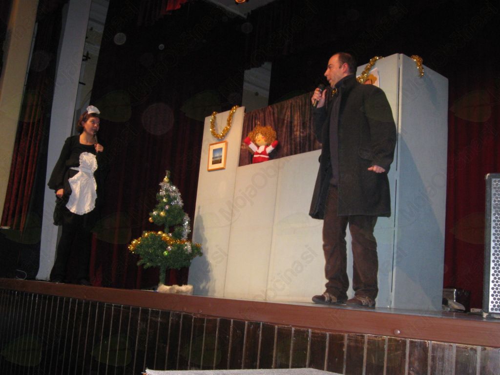 Dvorano kulturnega doma je  napolnil otroški smeh, ki ga je s spretno komunikacijo z gledalci spodbudila glavna igralka predstave Lučka,  hišna pomočnica v družini gospoda Bogataja. Gospod Bogataj se  na božični večer ukvarja  s pripravami na praznovanje s prijatelji, medtem ko  njegova hči Kasandra  in  hišna pomočnica Lučka vesta, da je bistvo praznovanja nekaj čisto drugega kot nakupovanje in tekanje naokrog,  zato spremenita načrt gospoda Bogataja in odpovesta zabavo, namesto nje pa pripravita zabavo za otroke - gledalce, ki se skupaj z Lučko in Kasandro naučijo pesem, s katero gospodu Bogataju povrnejo nasmeh.