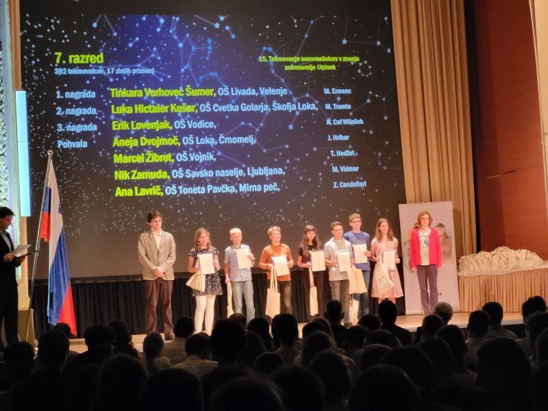 Na prireditev je bil povabljen Marcel Žibret iz 7. b, ki so mu podelili pohvalo, ki jo je prejel na državnem tekmovanju iz znanja astronomije, UTRINEK.