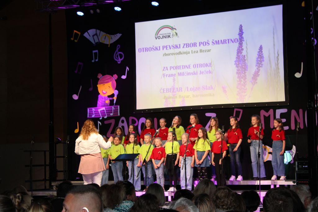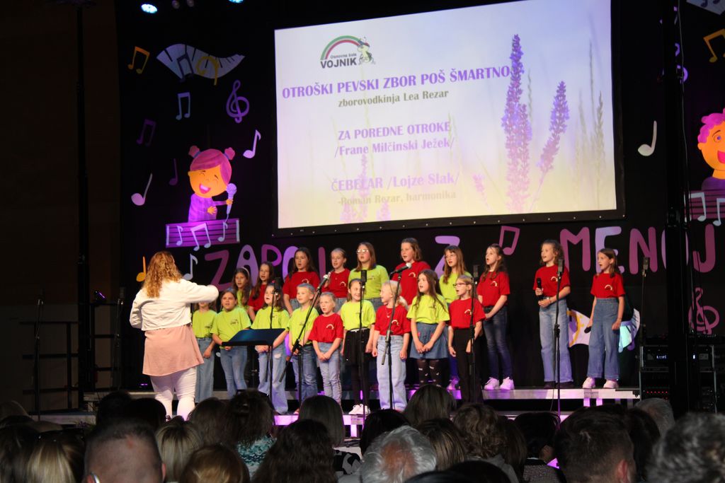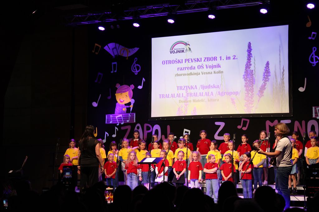 Na koncertu je prepevalo okrog 220 mladih, ki sodelujeo v sedmih zborih. Predstavili so se otroški zbori in zborovodkinje s podružnic: Nova Cerkev s Sabino Penič, Socka z Ireno Berzelak in Šmartno z Leo Rezar. Z matične šole pa so peli najmlajši iz 1. in 2. razreda pod vodstvom Vesne Kolin, 3. in 4. razreda z mentorico Barbaro Jančič ter mlajši mladinski zbor 5. in 6. razreda, ki ga vodi Janja Belej. Vsak sestav je zapel dve skladbi, slišali smo pester nabor ljudskih, zborovskih in popularnih pesmi.