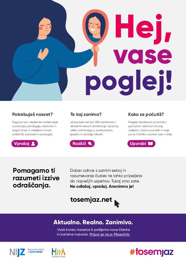 Glede na porast uporabe tovrstnih izdelkov med osnovnošolsko populacijo je v četrtek, 10. 11. 2022, ob 18. uri organizirano spletno predavanje, ki ga bo izvedla gospa Helena Koprivnikar, dr. med., spec. Po predavanju bo predavateljica odgovarjala na vaša vprašanja. Vljudno vabljeni.