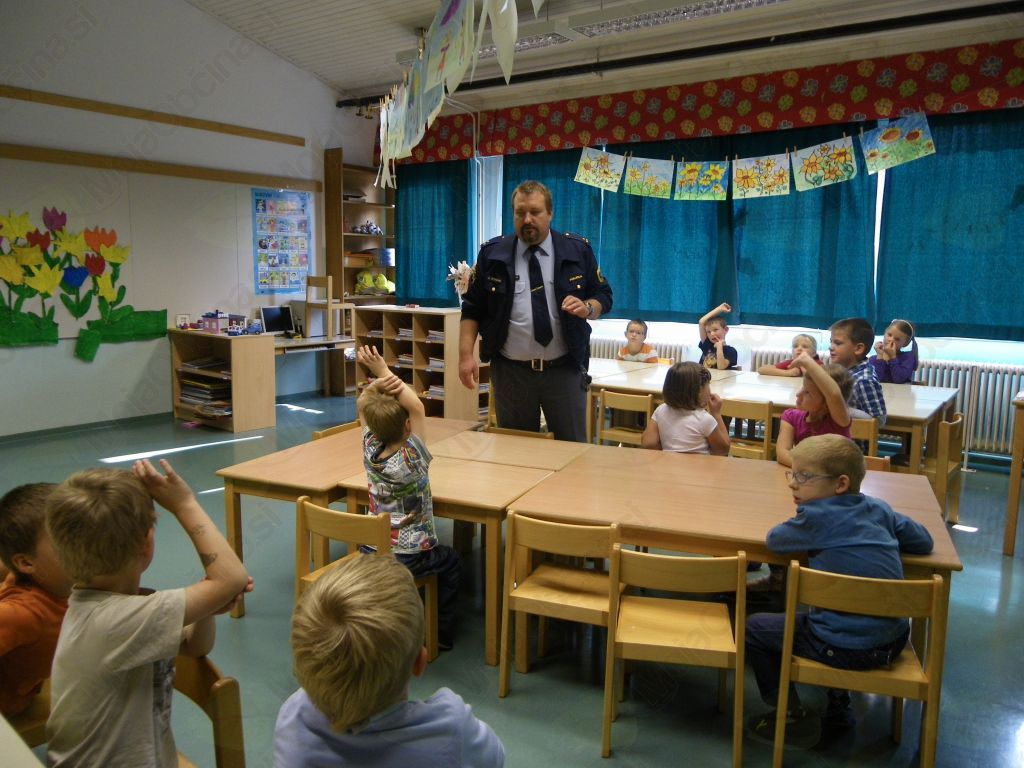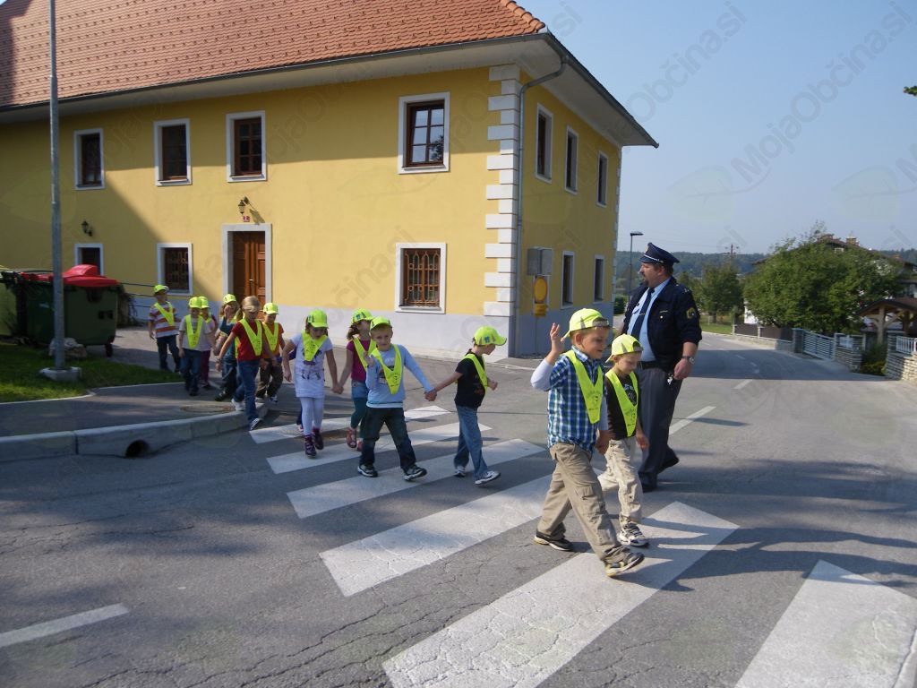 To smo storili tudi letos. En šolski dan smo poimenovali "Varni in vidni v prometu" in obiskal nas je policist Aleš. Prvošolce je pospremil na sprehod po Vojniku, jih opozoril na posebej nevarne situacije v prometu, jih opomnil, da je rumena rutica obvezna v prvem in drugem razredu in poudaril, da je pomembna tudi kresnička in svetla obleka. Seveda ni pozabil učencem naročiti, da se v avtomobilu nikakor ne smejo pozabiti pripasati.