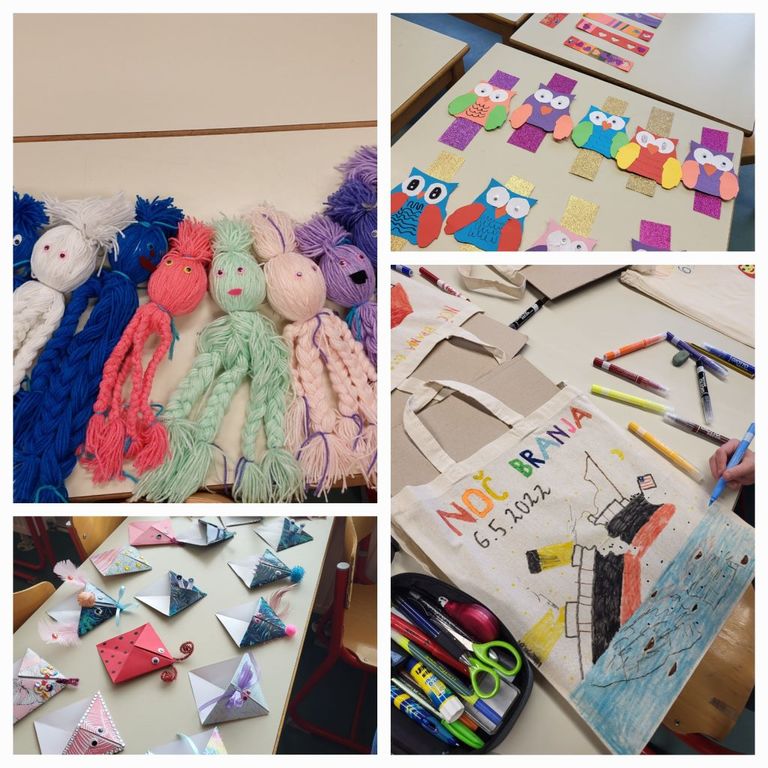 Zaključek projekta Noč branja smo na šoli izvedli v petek, 6. maja, in v soboto, 7. maja 2022. Učencem smo ponudili razne ustvarjalne delavnice, večer filmov in risank, večerno branje pravljic in igranje družabnih iger, v goste pa smo povabili tudi zelo znanega slovenskega pisatelja Primoža Suhodolčana.
