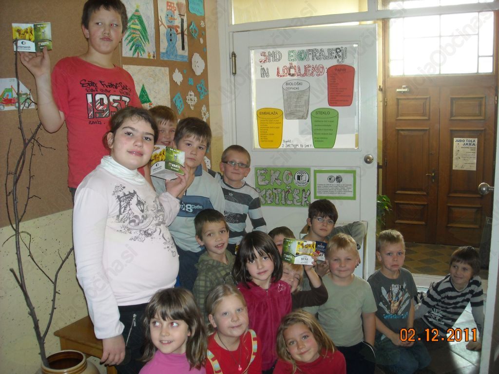 "Mi smo pravi »EKOFRAJERJI«,  saj smo v jesenskem času urejali šolski park. Pograbili smo odpadlo listje in veje, očistili živo mejo, pobrali smeti v okolici šole in  šolskega igrišča. V šoli smo uredili »EKO KOTIČEK«.Izdelali smo plakat, kjer smo predstavili ločevanje odpadkov. Postavili smo koše, v katerih zbiramo plastične zamaške, časopisni papir, embalažo in odpadne baterije, tonerje ter kartuše. V tem letu zbiramo plastične zamaške za Simona Vogrinca, ki je v tragični nesreči na Jahorini izgubil obe nogi. Z izkupičkom od prodanih zamaškov bodo Simonu kupili protezi, ki ju nujno potrebuje. V vsakem razredu imamo koše, ki smo jih opremili z ustreznimi napisi. Pri zbiranju odpadnega papirja smo zelo uspešni, saj sledimo načelu - vsak košček papirja šteje."