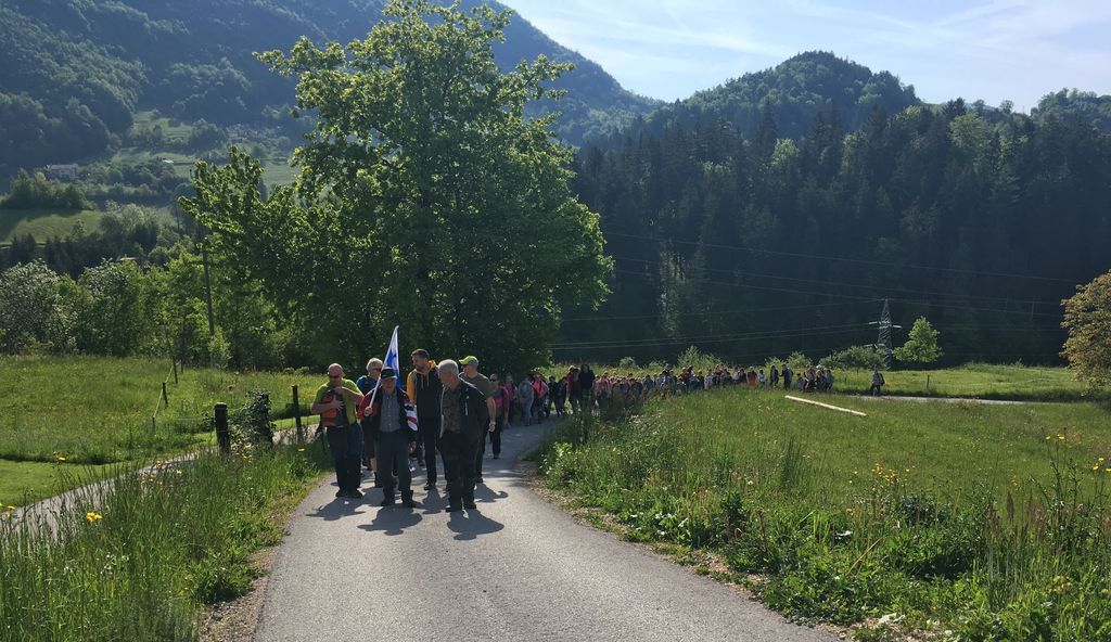 Zbor pohodnikov je bil pred šolo – učenci, učitelji, starši, krajani, člani združenja, ravnateljica šole in župan Občine Vojnik Branko Petre – smo se v lepem sončnem vremenu, v dolgi koloni odpravili navkreber. Vztrajno smo grizli v hrib kot nekdaj borci za svobodo. Po uri in pol hoda smo prišli na cilj. Pohodniki so prihajali z različnih koncev in presenetili so nas tudi učenci OŠ Vojnik.