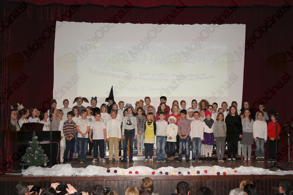 Decembrske prireditve so na matični šoli in vseh njenih podružničnih osnovnih šolah tradicionalen uvod v praznične dni. Dobrodelni bazar v otrocih spodbudi dodatno ustvarjalnost, jih motivira za pomoč drugemu in z neposredno dejavnostjo vključi v medsebojno sodelovanje. S predstavami, ki jih učenci skupaj s svojimi učitelji pripravijo za starše in krajane, s plesom, pesmijo, z dramsko igro in nastopi glasbenikov voščijo ob praznikih. Otroci razredne stopnje OŠ Vojnik so iskali srečo in jo našli v prijateljstvu. Srečo je uspelo ujeti tudi otrokom na POŠ Nova Cerkev, pri tem pa sta jim z glasbo pomagala tudi Tine Lesjak in Stanko Mikola. Na podružnični šoli Socka so spremenili konce pravljic in ob pomoči dobre čarovnice, ki je hudobne čarovnice spremenila v dobre, dosegli, da se jih otroci niso več bali. V Šmartnem pa sta škrata iz pravljične dežele izpolnjevala želje otrok.