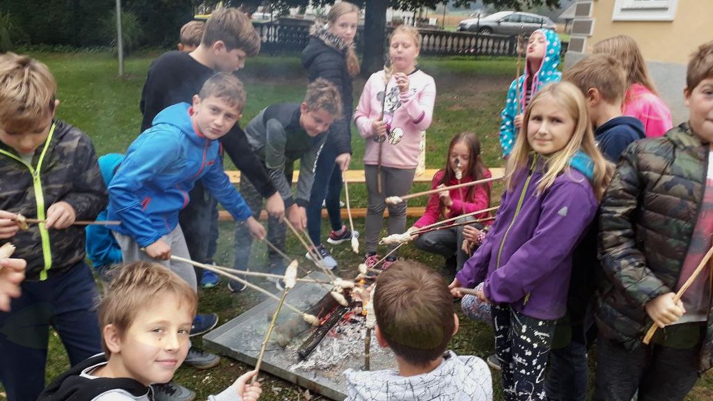 V torek smo učiteljice zakurile taborni ogenj na šolskem dvorišču. Zjutraj smo zamesili testo, ki smo ga navili na palice in spekli ob ognju. Pekli smo tudi jabolka in krompir, na koncu pa še sladke penice. Otroci so rekli, da tako slastnega kruha še sploh niso jedli.