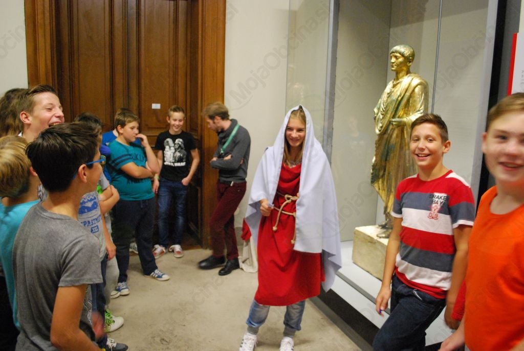 Popoldan smo se odpravili še v Prirodoslovni muzej v Ljubljano. V muzeju smo si ogledali razstavo arheoloških vrhuncev, pri tem smo učence tudi oblekli v rimske toge. Na paleontološki razstavi smo izvedeli veliko novega o razvoju življenja od nekoč do danes. V zadnji delavnici smo spoznavali življenje mamutov in ostalih živali. Učenci so spoznavali živali in njihove posebnosti tudi s pomočjo reševanja delovnih listov.
