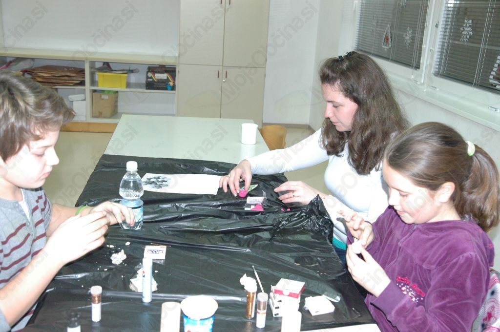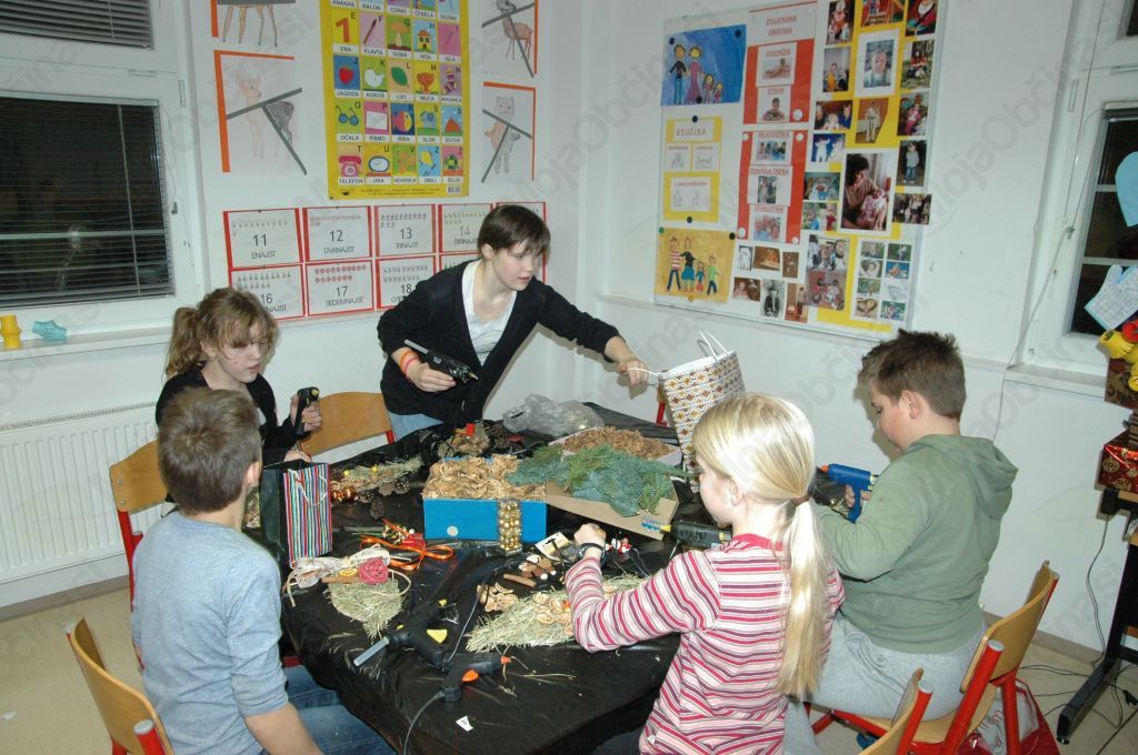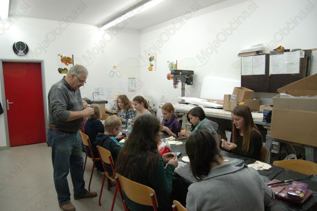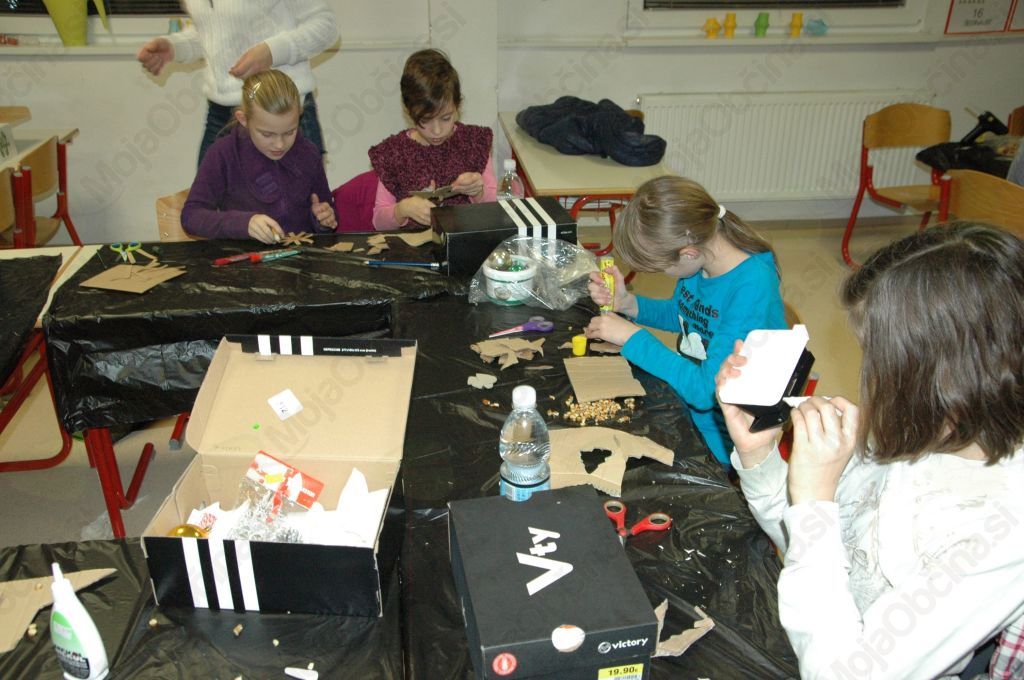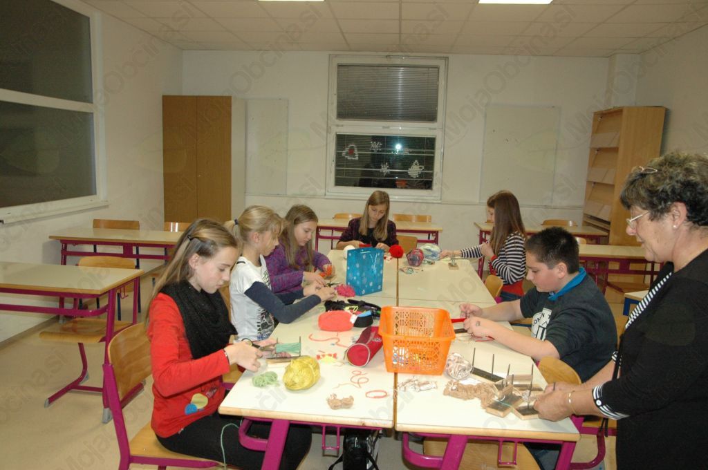Učenci četrtih in petih razredov so imeli na razpolago tri delavnice, in sicer izdelovanje pujskov iz fimo mase, ki jo je vodila Lea REZAR, izdelovanje novoletnih okraskov iz naravnih materialov, ki jo je vodila Metka KLINC, ter izdelovanje aranžmajev iz orehovih luščin, ki jo je vodila Vilma OŠLAK.
