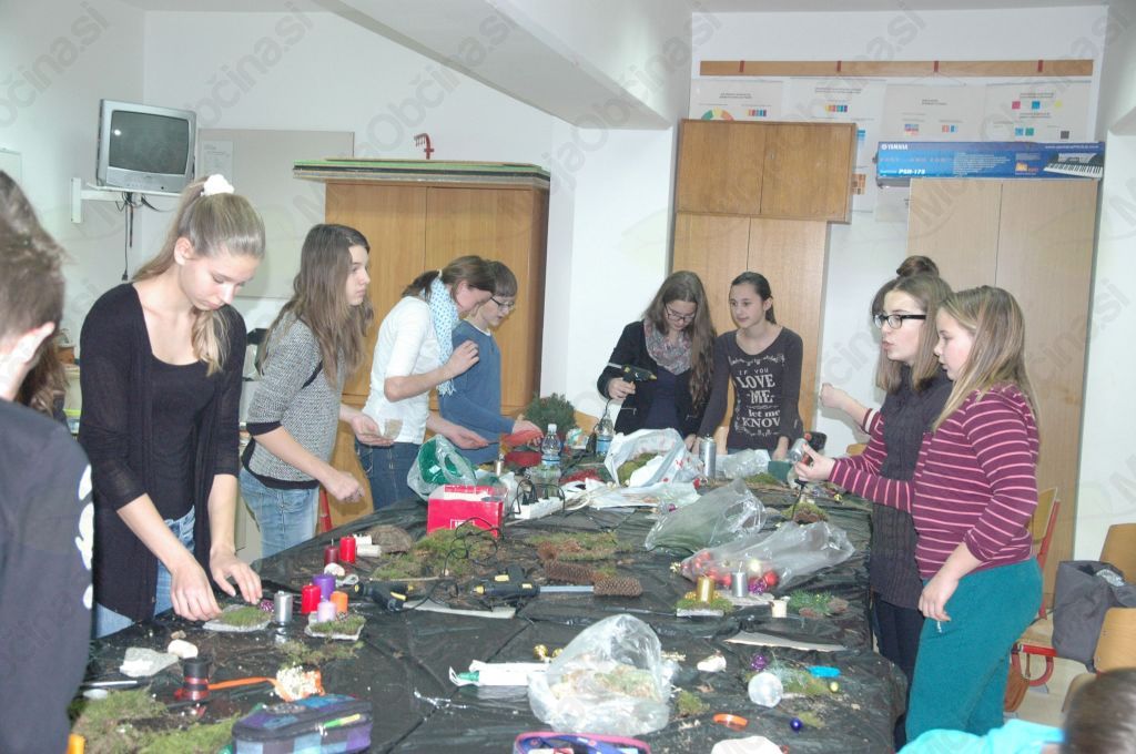 Učenci od šestega do devetega razreda pa so imeli na razpolago kar štiri delavnice, in sicer so lahko izdelovali aranžmaje iz naravnih materialov pod vodstvom Milene JURGEC, jelenčke iz lesa pod vodstvom Dušana ŽGAJNERJA in Petre STRNAD, angelčke iz volne pod vodstvom Jožice POVŠE ter sestavljanke iz lesa pod vodstvom Jožeta ŽLAUSA.