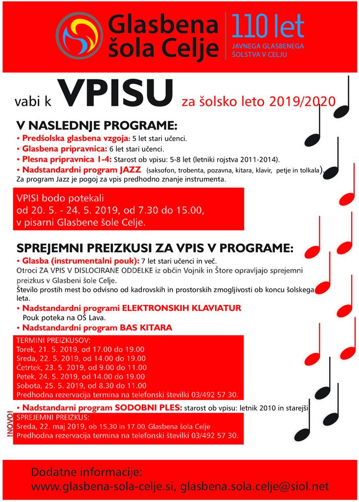 Dodatne informacije: www.glasbena-sola-celje.si, glasbena.sola.celje@siol.net