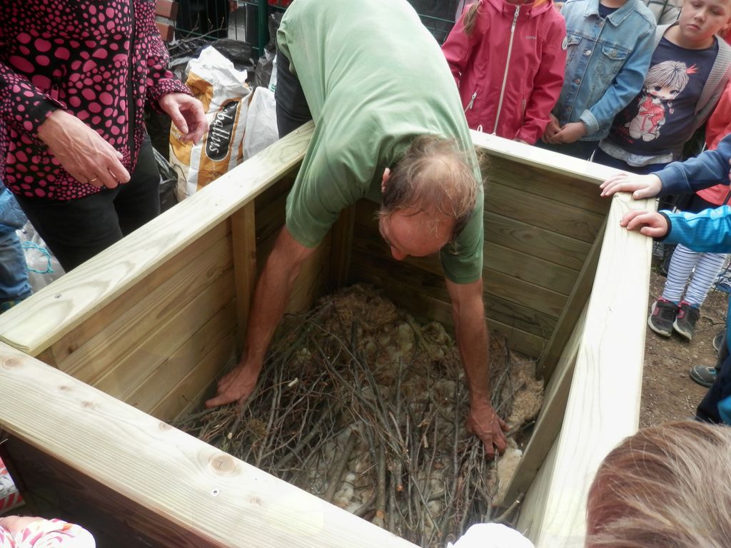 Smo jih res zavihali? V gozdu smo nabrali vse potrebno (veje, listje, smrečje) in po plasteh napolnili svojo visoko gredo. Za volno in zemljo so poskrbele članice TD Nova Cerkev in ob pomoči »mojstra« Mihe iz Klučarjeve domačije je bilo kmalu vse nared za saditev. Posadili smo zelišča, ki jih bomo koristno uporabili mi in čebelice. Postopek si oglejte na priloženih fotografijah.