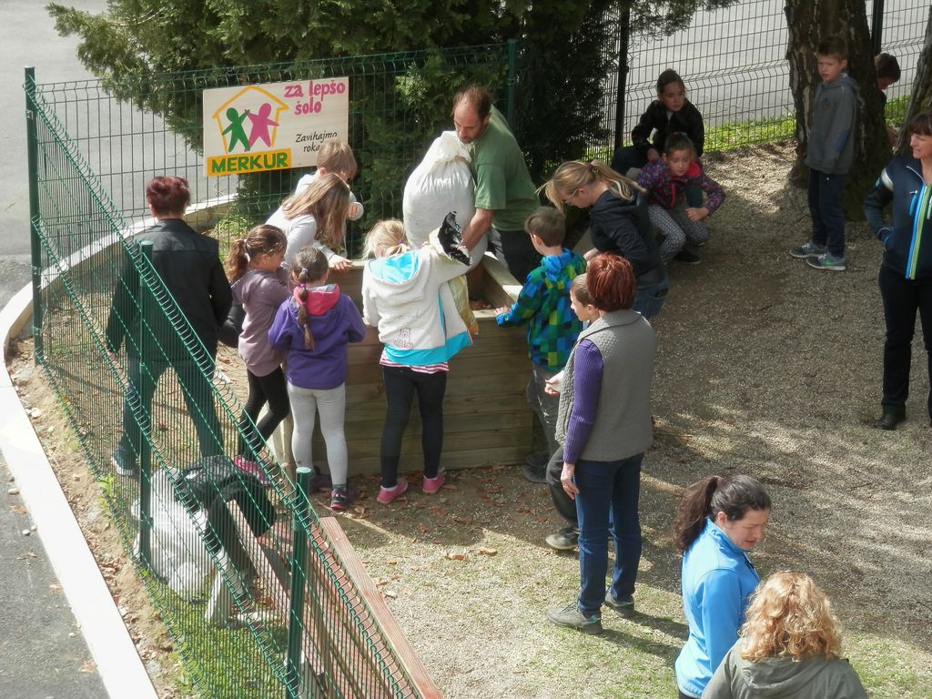 MERKUR je s projektom »ZAVIHAJMO ROKAVE – ZA LEPŠO ŠOLO« postavil izziv vsem slovenskim osnovnim šolam ter s pomočjo donacij dodatno spodbudil in okrepil skrb osnovnošolcev za ureditev šole oziroma šolske okolice, da bodo preživete ure tam še prijetnejše. Tudi POŠ Nova Cerkev se je odzvala in na natečaju osvojila visoko gredo in rastline za njeno zasaditev.