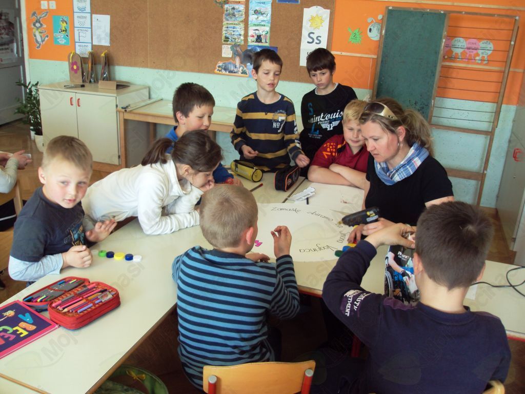 V mesecu marcu smo začeli aktivneje zbirati zamaške tudi na POŠ Nova Cerkev. V oddelku podaljšanega bivanja smo izdelali plakat.