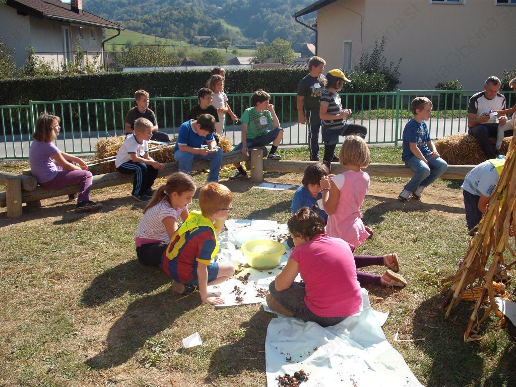 Najprej so se otroci seznanili s pravicami in dolžnostmi otrok vsega sveta, nato pa so spoznali kakšno je bilo življenje njihovih vrstnikov nekoč. Ta dan so se otroci preselili v preteklost in postali pastirci. Naučili so se dve pastirski igrici, na žerjavici pekli jabolka, izdelovali okraske iz jesenskih plodov ter pripravili grozdni sok. Ob koncu smo se posladkali še s pečenim kostanjem, ki nam ga je spekel Peter Špegelj, za kar se mu najlepše zahvaljujemo.