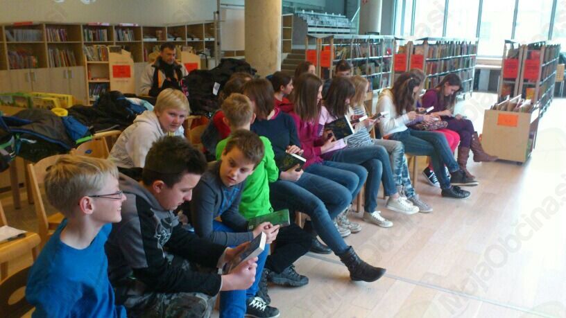 V četrtek, 4. 4. 2013, smo sedmošolci odšli v Celje s knjižničarko gospo Suzano Šafarič in razrednikom gospodom Ivom Špegličem. Obiskali smo Osrednjo knjižnico Celje. Podrobneje smo spoznali delovanje knjižnice in njene oddelke. Knjižničarka nam je predstavila številne knjige Tadeja Goloba. Njegovo knjigo Zlati zob pa je vsak od nas prejel tudi v dar. Knjige smo se razveselili, čeprav je kar debela, in tisti, ki ne berejo radi, so bili kar malo žalostni. Predstavila nam je še druge knjige s športno vsebino in seveda ljubeznijo, ki prepleta večino zgodb. Naš obisk je hitro minil, saj je bilo zelo poučno in veselo.