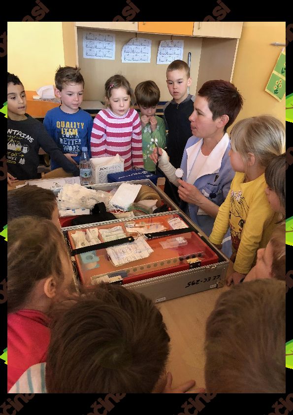 V aprilu smo v Vrtcu Mavrica Vojnik veliko pozornosti namenili zdravju in skrbi zanj. Obiskala nas je medicinska sestra Barbara, ki nam je pripravila zanimivo delavnico prve pomoči. Ob pripovedovanju pravljice nas je seznanila z nesrečami, ki se nam lahko pripetijo, kako naj odreagiramo, če pride do njih, koga pokličemo … Otroci so se seznanili s številko 112 in na konkretnem položaju preizkusili, kako se obnašamo, ko se zgodi nesreča. Preko slikovnega gradiva so spoznali različna obolenja in se naučili, kako jih oskrbimo, tudi zavezovanja pestovalnice in obvezovanja ran. Otrokom je bilo najbolj zanimivo spoznavanje zdravniške torbe, saj so radovedno pogledovali vanjo ter raziskovali, kaj vse se skriva v njej.