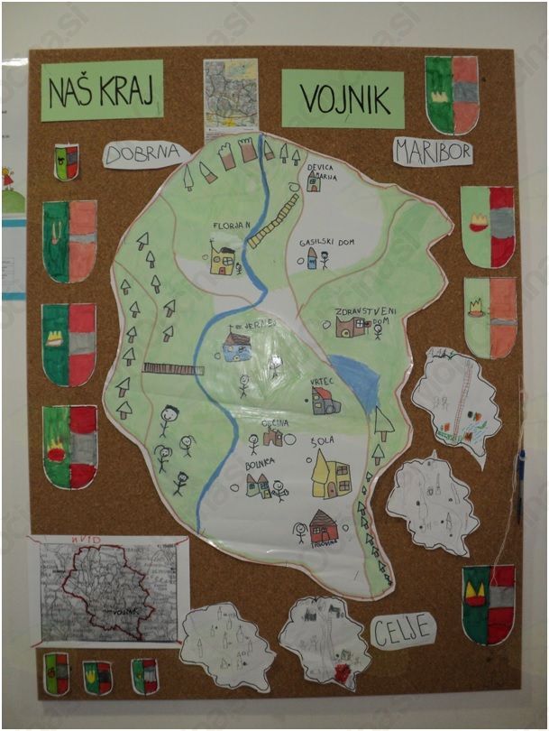 Otroci so takoj po obisku podali idejo in uredili kotiček Občina Vojnik. Vanj so postavili gradivo, keramični občinski grb, računalniško tipkovnico, telefon, koledar … Narisali so tudi grbe in izdelali ogromen plakat občine Vojnik. Na zemljevidih so označili kraje, kjer živijo, in kraj, v katerem obiskujejo vrtec … To pa še ni vse – v nekaj dneh smo usvojili tudi otroško pesem v hrvaščini z naslovom Kad si srećan in se naučili kar nekaj hrvaških besed. Dejavnosti projekta potekajo s polno paro, otroci dajejo nove in zanimive predloge, sodelujejo tudi njihovi starši. Obogateni z novim znanjem, opremljeni z izdelki, dobro voljo in energijo komaj čakamo, da se bomo na začetku februarja prvič v živo videli in slišali s prijatelji iz Hrvaške.