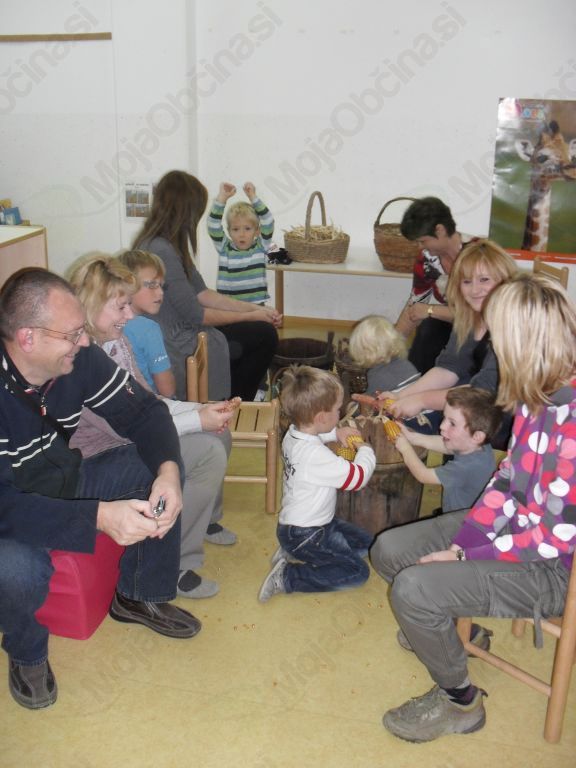 Otroci so si ogledali lutkovno predstavo Kroki in prijatelji, zaključili pa smo s tradicionalnim jesenskim piknikom, na katerega smo, v sklopu medgeneracijskega sodelovanja, povabili tudi svoje babice in dedke. Otroci, starši in stari starši so spoznavali in se preizkusili v različnih kmečkih opravilih ter se pogostili z darovi jeseni.