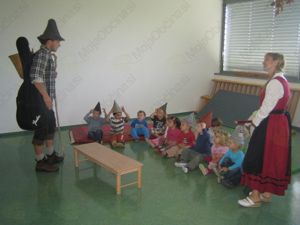 V tednu otroka, katerega tema je bila letos „Pojdiva s knjigo v svet“, so se pri nas odvijale zanimive dejavnosti. Otroci so spoznavali slovenske ljudske pravljice in na to temo ustvarjali v različnih delavnicah. Obiskala sta nas tudi Kekec in Mojca, ki sta nam s pesmijo polepšala dan in nam prinesla različne naravne plodove na katere smo z veseljem zaigrali.