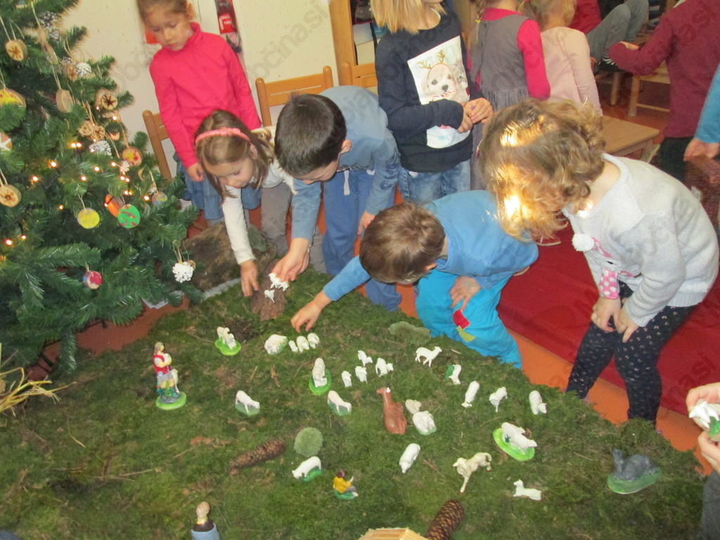 Otroci in vzgojitelji smo se na božič pripravljali ves advent, zato smo še bolj z veseljem in mirom v srcu pričakali božični večer. V vrtcu smo 23. decembra okrasili božično drevo z otroškimi okraski. Otroci so pobarvali in poslikali storže ter lesene deščice iz narezanih vej. Tako so spoznali možnost naravne in ekološke dekoracije drevesa, poleg tega pa je drevo videti fantastično.