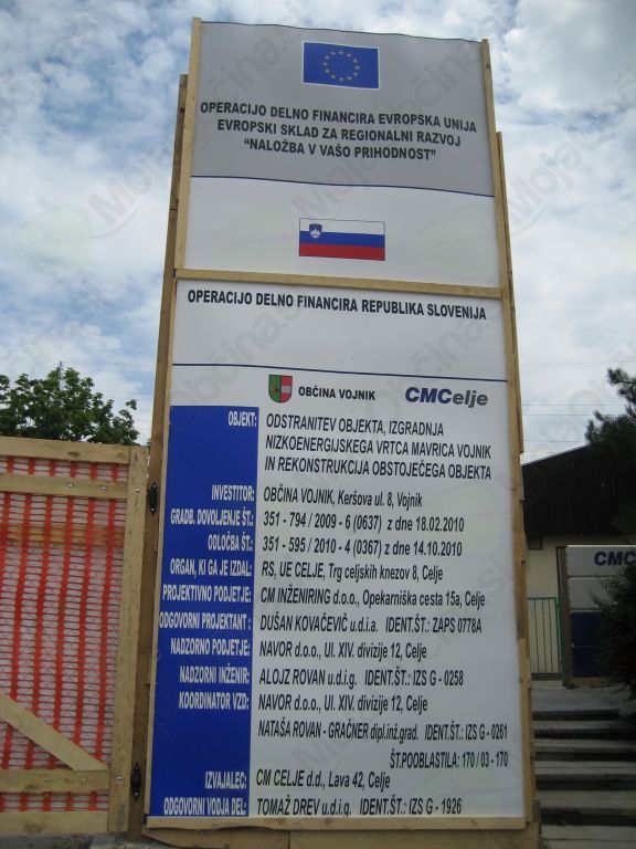 Projekt, ki je predmet prijave, obsega izvedbo izgradnje nizkoenergetskega vrtca Vojnik.