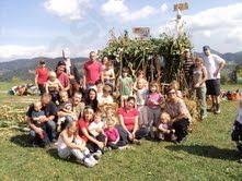 Otroci in starši smo združili moči in začeli z gradnjo škratovega domovanja iz različnih naravnih materialov, ki so bili predhodno že pripravljeni (veje raznih dreves, slama, žito, koruza, praprot ...). Opremili pa smo ga z raznimi jesenskimi plodovi (buče, kostanj, storži in ostali material, katerega smo prinesli s sabo).