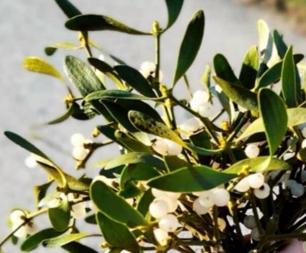 V krošnjah dreves ste pravzaprav opazili polzajedalsko rastlino belo omelo, ki spada v družino Omelovk.