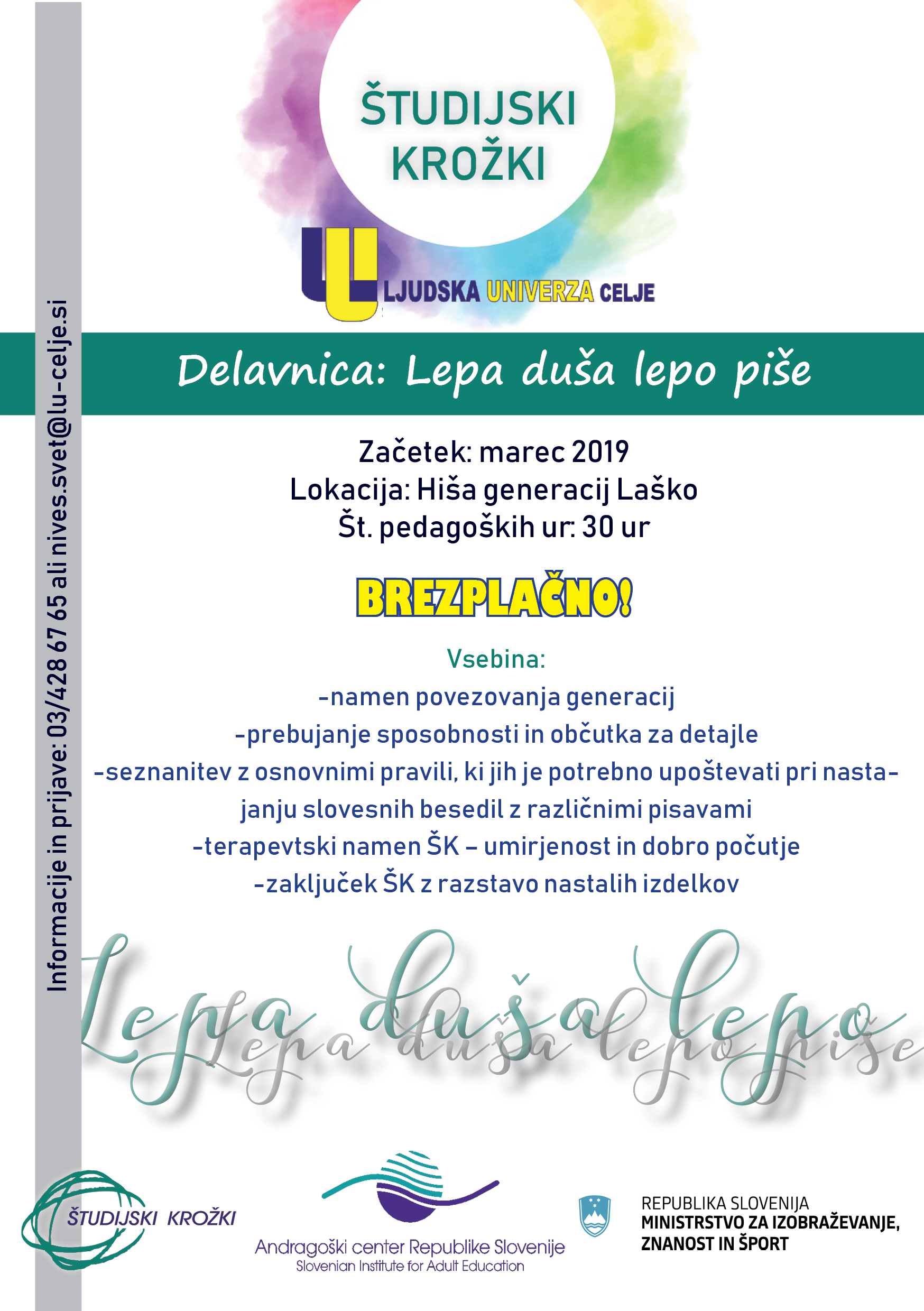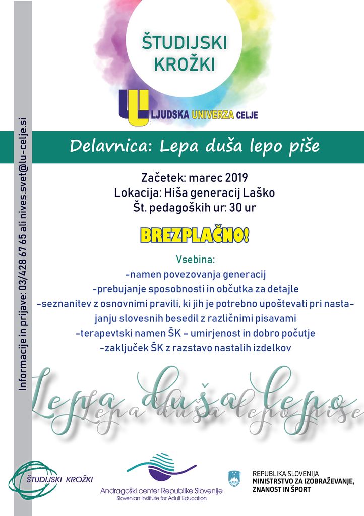 PRIJAVE zbiramo na številki 03/ 428 67 65 ali nives.svet@lu-celje.si