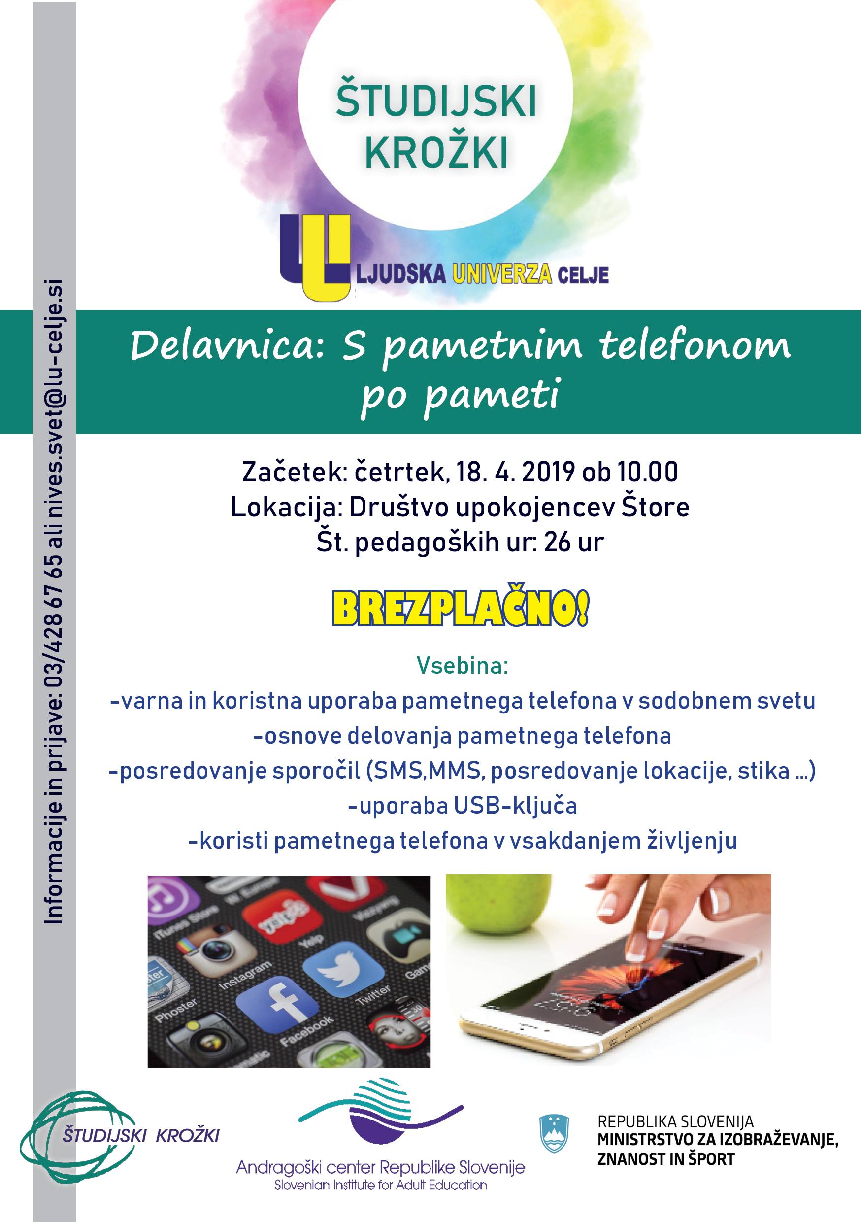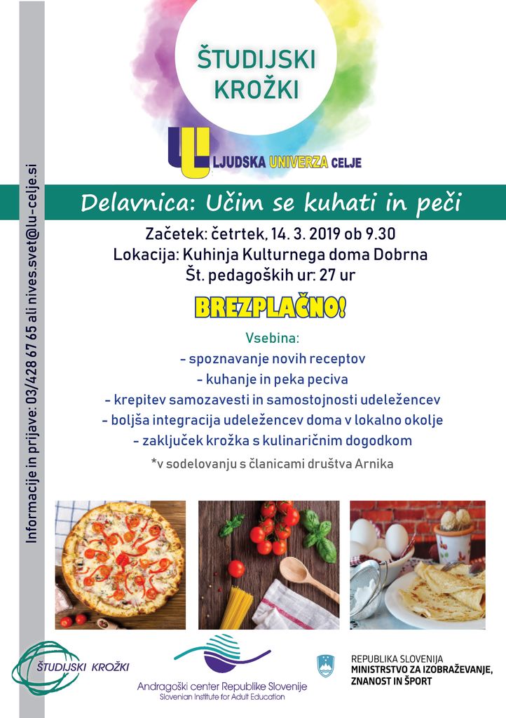 Prisrčno vas vabimo, da se PRIJAVITE in udeležite študijskega krožka ter s svojo udeležbo še dodatno okrepite zavest o pomembnosti učenja v vseh življenjskih obdobjih.