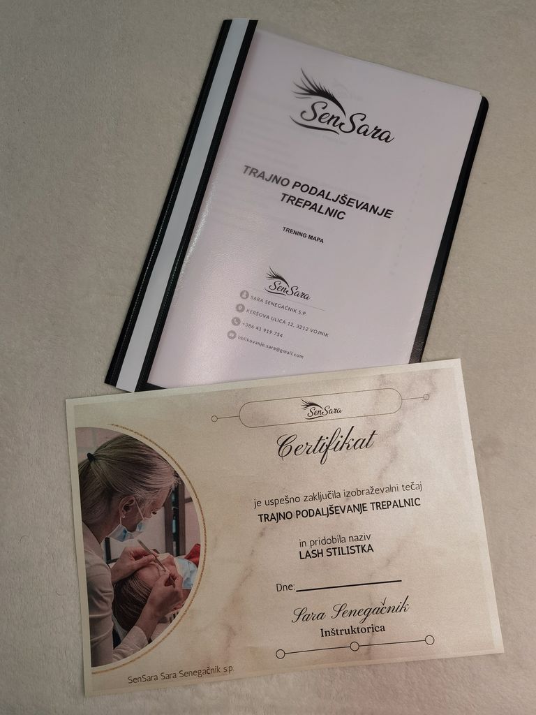 Volumenskega tečaja se lahko udeležijo posameznice, ki so prej opravile prvi tečaj. V drugem delu tečajnica najprej osvoji teorijo, praktični del pa predstavlja izdelavo šopkov in nameščanje na naravne trepalnice, ki jo izvede na svojem modelu. Ob zaključku izobraževanja tečajnica pridobi certifikat za izvajanje trajnega podaljševanja trepalnic z nazivom Lash stilistka. Sara svetuje tečajnicam tudi o nabavi materiala in jim nudi kasnejšo pomoč. Sara je dosegljiva na telefonski številki 041 919 754, pokličite jo in pridobite dodatne informacije o izobraževanju.
