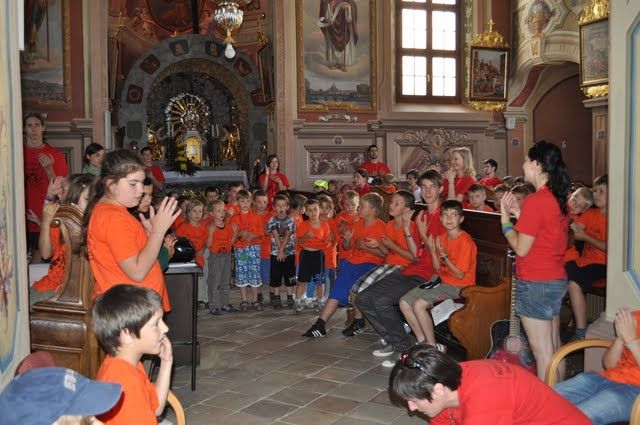 Seveda pa tudi letos ni manjkal izlet, tokrat z vlakom v Ljubljano. Tam smo uživali v živalskem vrtu, se srečali s frančiškani in obiskali Ljubljansko stolnico. Oranžno in rdeče obarvana dolga oratorijska »četica« pa je vzbudila zanimanje marsikaterega obiskovalca na Prešernovem trgu (celo mimoidočega župana). Naše oratorijske dneve smo zaključili s predstavitveno mašo ter druženjem s starši.