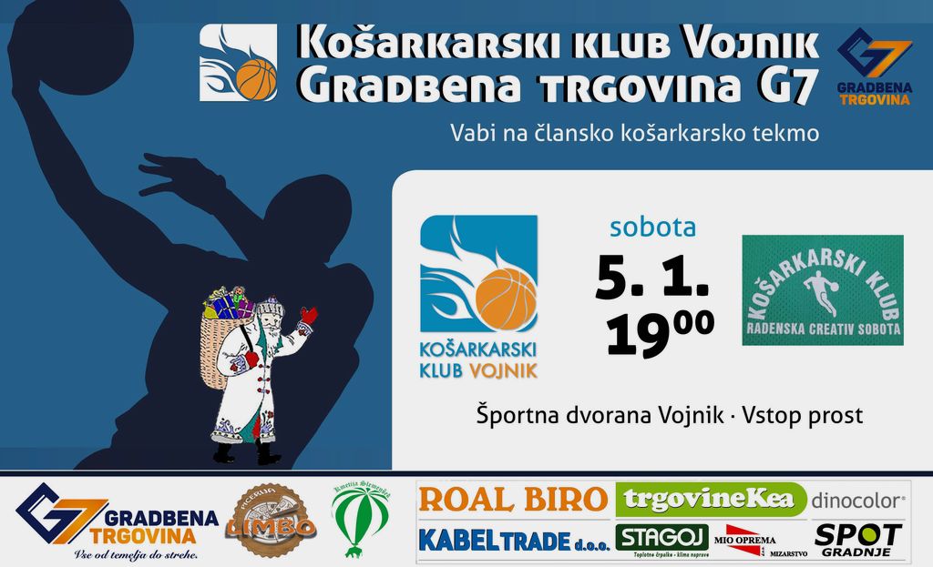 KK Vojnik in dedek Mraz vabita na člansko tekmo in i derbi košarke za prvo mesto v tretji SKL, ki bo