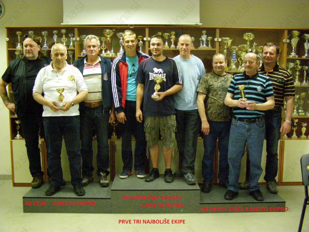 V Doliču smo v nedeljo, 9. 6. 2013, v okviru in na čast praznika Krajevne skupnosti Vojnik organizirali strelsko tekmovanje z malokalibrsko puško. Sodelovale so ekipe strelskih društev okoliških občin, in sicer: SD bratov Dobrotinškov Vojnik,SD Slovenske Konjice, SD Swaty Zreče, SD Špitalič, SD Celje in SD Dolič. Tekmovanje je potekalo v sproščenem vzdušju, brez neljubih in nepotrebnih zapletov. Za varnost in red so skrbeli člani našega društva, brez katerih ta organizacija ne bi uspela.Po končanem tekmovalnem delu smo poskrbeli tudi za malico. Zaradi slabega finančnega stanja našega društva smo pogostitev organizirali v svoji režiji; za naše želodce so poskrbele naše partnerke Majda Brežnik in Katarina Brežnik.Pred podelitvijo pokalov in medalj pa je prisotne v imenu predsednice krajevne skupnosti Lidije Eler Jazbinšek pozdravil podpredsednik Franc Kuzman, ki je tudi naš aktivni član in zadolžen za finance. Na tem mestu se zahvaljujem za finančni prispevek Krajevne skupnosti Vojnik (plačilo pokalov in medalj) v upanju, da bodo tudi v bodoče imeli kdaj posluh za naše probleme in želje, ker naše delovanje tudi prispeva k prepoznavnosti naše krajevne skupnosti in celotne občine Vojnik. Še enkrat pa pozivam vse, ki imate doma zračno orožje, da se nam pridružite v naših prostorih na Celjski cesti 25 (za prostori Društva upokojencev Vojnik) ob ponedeljkih od 19.00 do 20-30. Vljudno vabljeni!